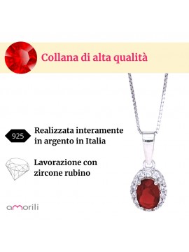 Collana con ciondolo rubino punto luce in argento 925 catenina da cm 42 cln0397