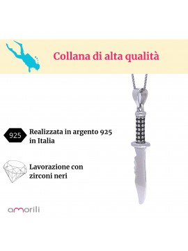 collana saetta lda acciaio e strass catena fino a cm 50 ciondolo mm 25 mm 9 cll1914