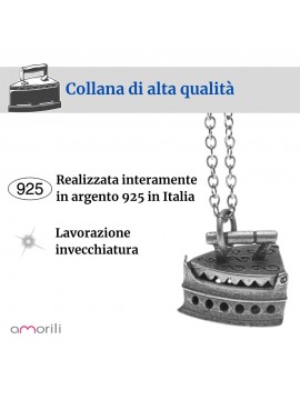 Collana con vecchio ferro da stiro a carbone ciondolo in argento 925 introvabile catenina fino a cm 50 mm 17 mm 15 - cln0064