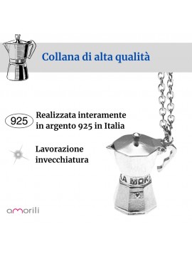 Collana con moka caffettiera ciondolo in argento introvabile catenina fino a cm 42 mm 20 mm 16 - cln0137