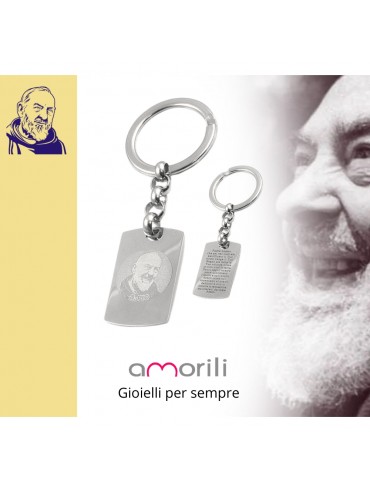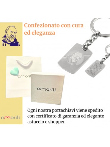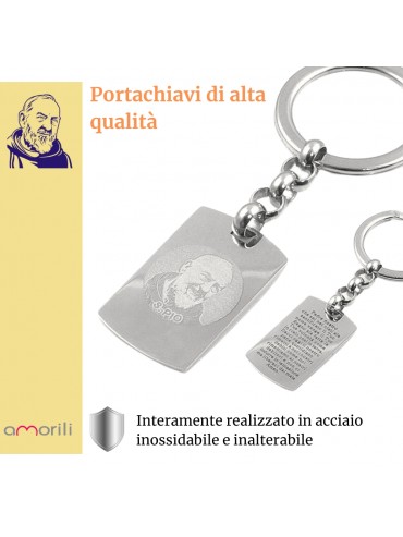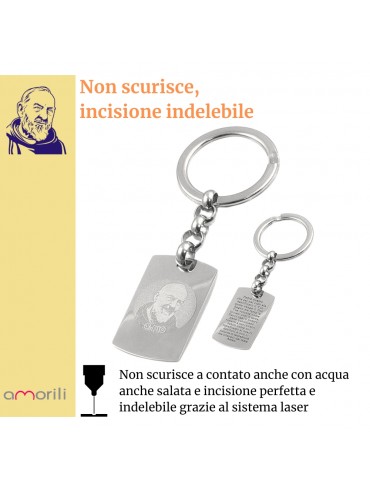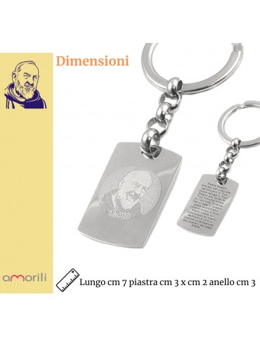 portachiavi san padre pio da pietralcina in acciaio con padre nostro mm 80 mm 30 prt0007
