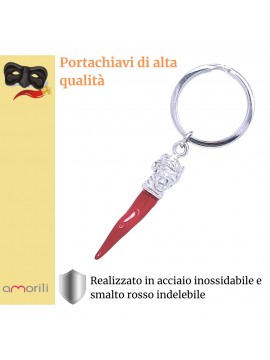 portachiavi peperoncino e corna portafortuna acciaio e smalto cm 7 prt0061