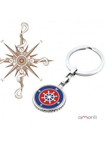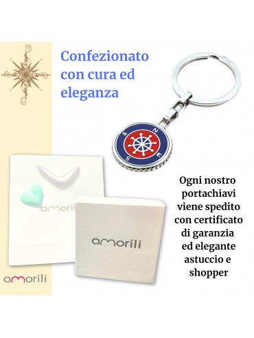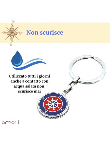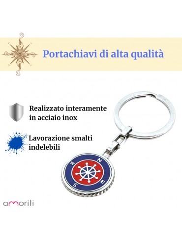 portachiavi in acciaio e smalti motivo timone - prt0085