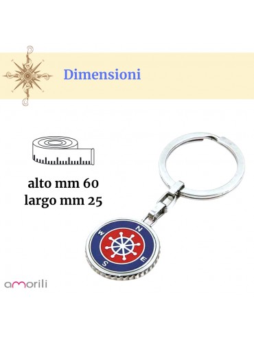 portachiavi in acciaio e smalti motivo timone lungo mm 60 largo mm 25 - prt0085