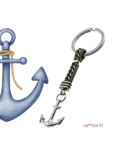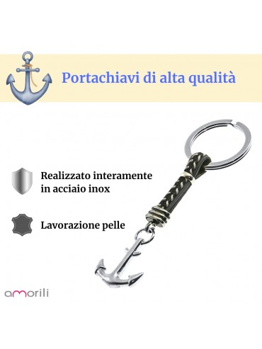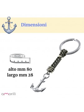 Portachiavi uomo con ancora in acciaio e pelle cm 8 mm 28 prt0015