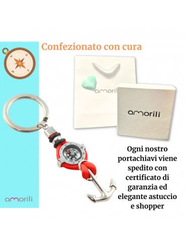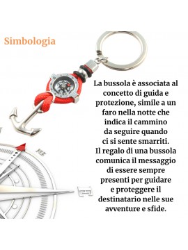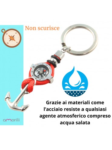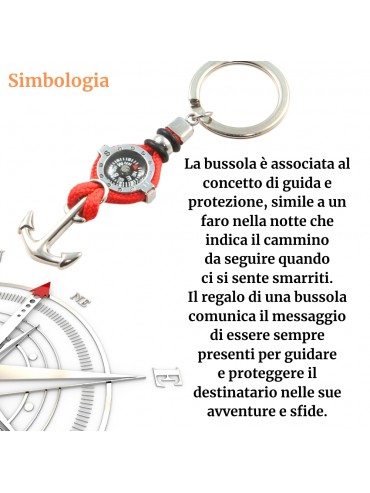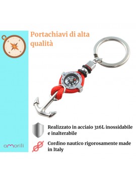 portachiavi uomo con bussola e ancora in acciaio e cordoncino rosso cm 9 cm 3 prt0238