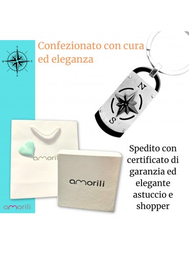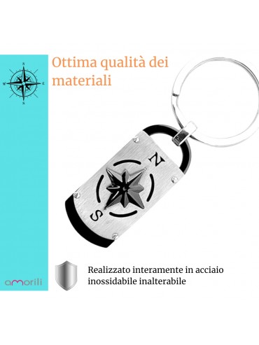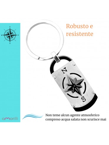 Portachiavi uomo con rosa dei venti in acciaio prt0016