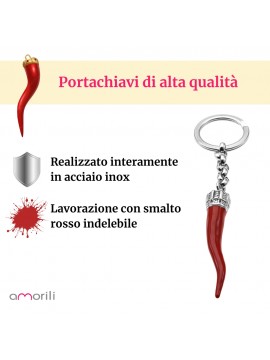 portachiavi corno napoletano portafortuna acciaio e smalto cm 7 prt0064