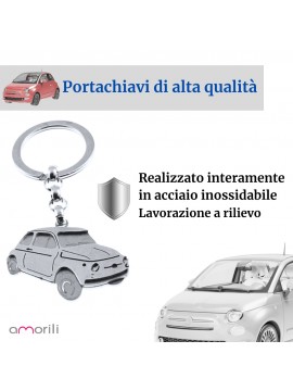 portachiavi 500 cinquecento auto in acciaio cm 7 cm 4 prt0069