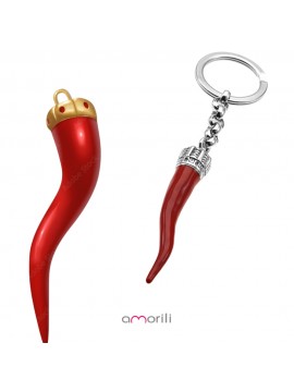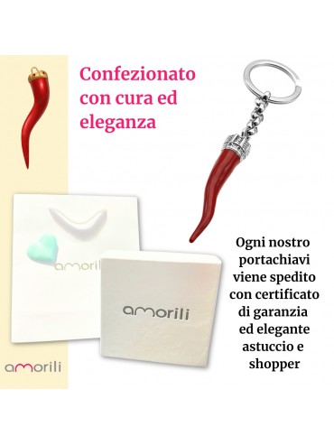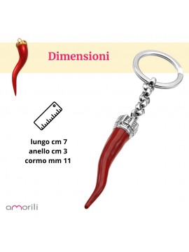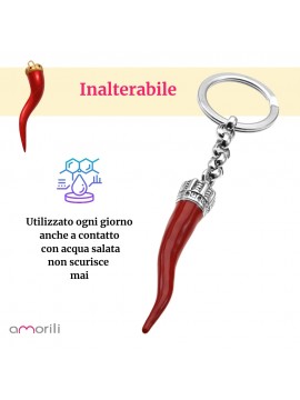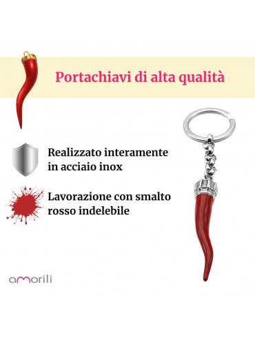 portachiavi corno napoletano portafortuna acciaio e smalto cm 7 prt0064