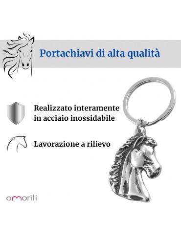 portachiavi uomo con testa di cavallo particolare in acciaio cm 7 cm 3 prt0243